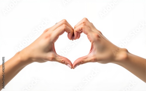 Female hands making sign Heart by fingers, isolated on white background. Beautiful hands of woman with copy space. Love concept on Valentine day. High quality