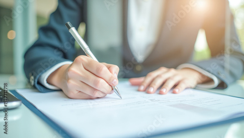 female hands sign a document in close-up