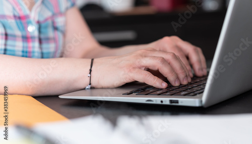 Female hands working on laptop