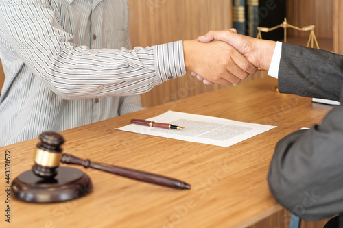 Female lawyer handshake with client. Business partnership meeting successful concept.