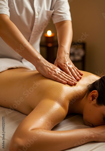 Female model receiving aroma oil massage. Luxury spa concept photo.