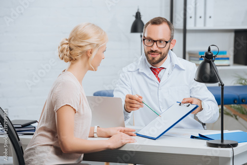 female patient having appointment with chiropractic in clinic