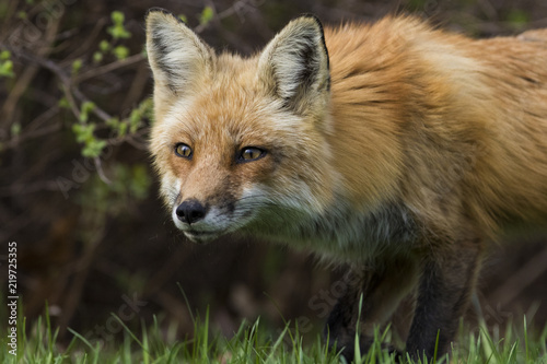 Female red fox hunting in spring