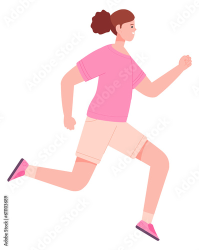 Female runner athlete. Sport training character side view