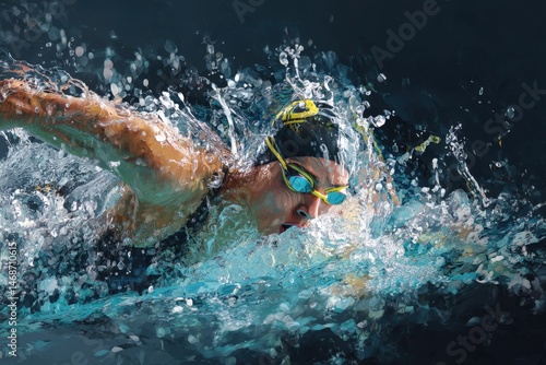 Female swimmer in action, freestyle stroke.