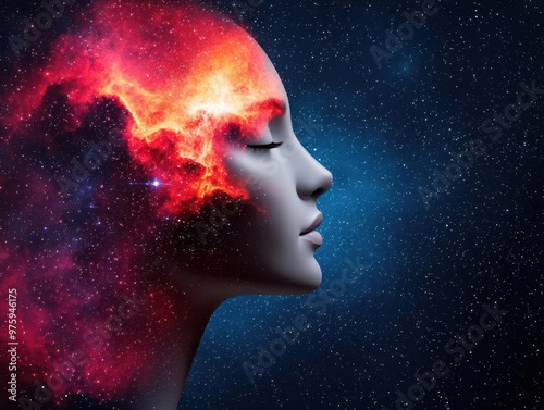 Female symbol surrounded by stars, cosmic empowerment, celestial background, 3D illustration