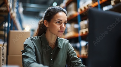 Female warehouse manager in e-commerce, showcasing a professional managing an e-commerce fulfillment center, overseeing fast-paced order processing, inventory management, and digital logistics.