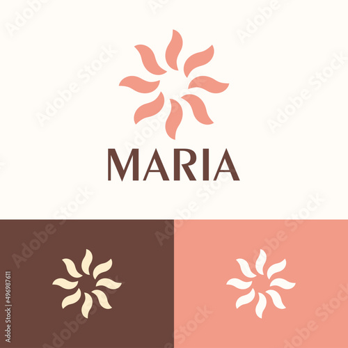 Feminine flower logo design concept. Blossom company brand logomark illustration. Can representing lotus, yoga, woman, salon, herbal, spa, beauty, fashion.