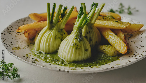 Fenchel, knolle, gericht, mahlzeit, neu, close up, Rezept, pommes, frites, pesto, sauce, bio, vegan, Veganes, essen, grün, sauce, modern, lifestyle, organisch, gesunde, ernährung, diät, gekocht, makro