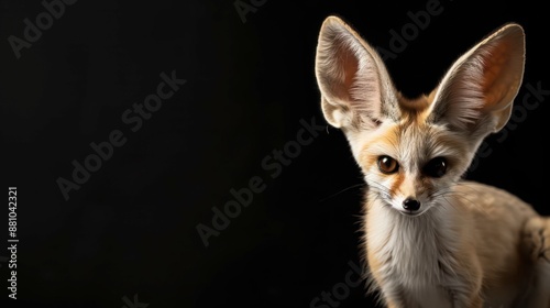 Fennec Fox Portrait Against Black Background