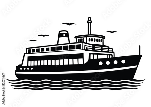 Ferry Silhouette with Birds on a Calm Sea