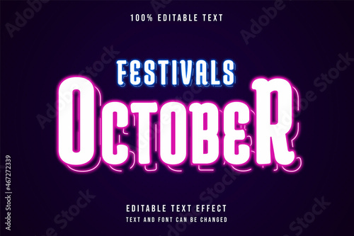 Festivals october,3 dimensions editable text effect modern blue pink text neon style