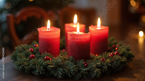 Festive Advent Candles for Christmas Countdown, Generative Ai