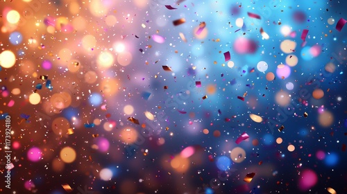 Festive backdrop with glitter, confetti, and ribbons, ideal for texts. Perfect for New Year, Christmas, birthday, or holiday-related banners