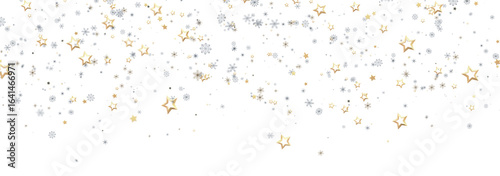 Festive background with gold and silver stars and snowflakes. Perfect for holidays.