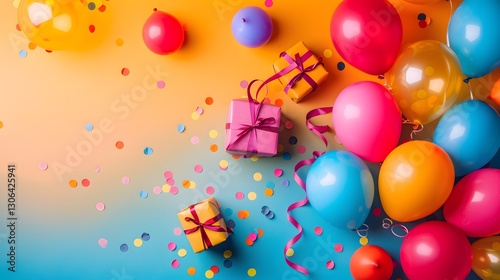 Festive birthday banner with vibrant balloons and gifts, bringing a sense of excitement and celebration to someone's special day, filled with joy and colorful decorations