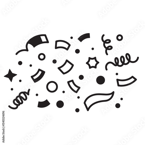 Festive black and white silhouette confetti and streamers illustration for celebrations and vintage art designs