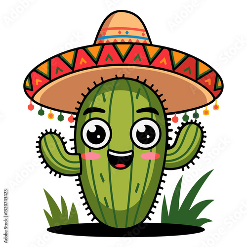Festive Cactus with Sombrero and Maracas Cartoon Illustration
