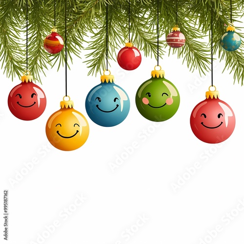 Festive Cartoon Ornaments with Smiley Faces for Christmas