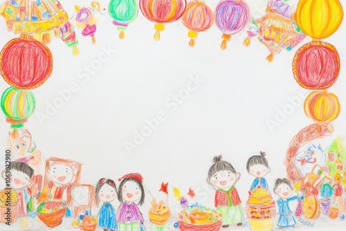 Festive Children's Pencil Drawing Celebrating a Colorful Holiday