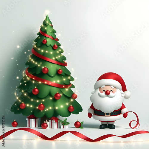 Festive Christmas Background with Tree, Red Baubles, and Twinkling Lights