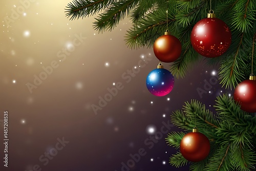 Festive christmas celebration background with decorated fir tree, ornaments, and holiday balls