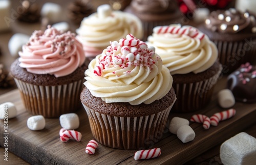 Festive Christmas Cupcakes with Chocolate and Candy Cane Decor