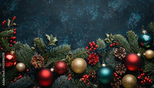 Festive Christmas Decoration with Pine Branches and Ornaments