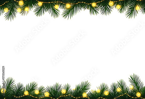 festive christmas garland with lights isolated on white background for seasonal decorations