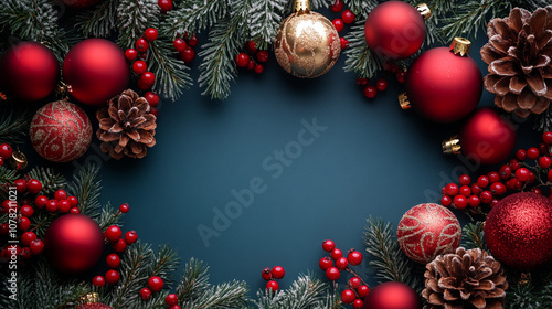 Festive Christmas Gifts and Pine Sprigs on Solid Color Backdrop