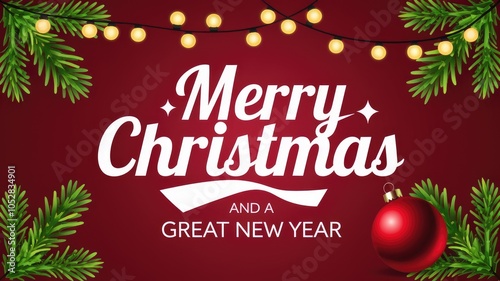 Festive Christmas greeting with decorations and ornaments, white isolated background.