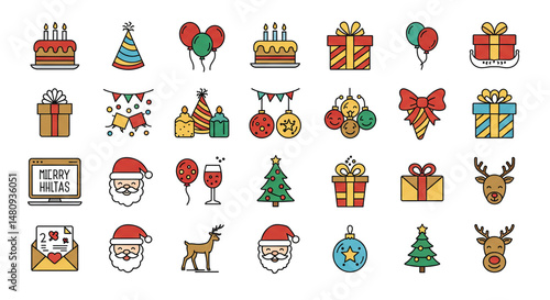 Festive Christmas Icons Santa Reindeer Gifts More Holiday Cheer Graphics