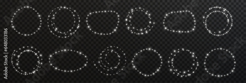 Festive Christmas light white garlands png. Decor element for postcards, invitations, backgrounds transparent, business cards. Stock royalty free. Winter new collection 2024.