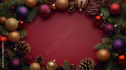 Festive Christmas Ornament Wreath with Pine Cones and Evergreen Branches