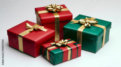 Festive Christmas Red and Green Gift Boxes Wrapped in Gold Ribbons