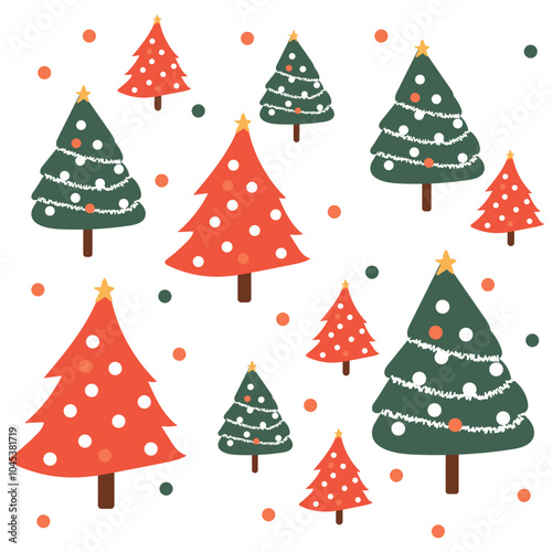 Festive Christmas Tree Pattern with Red and Green Trees and Polka Dots