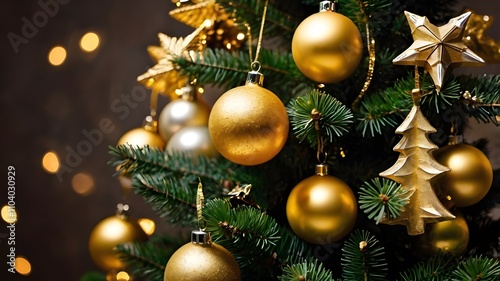 Festive Christmas Tree with Golden Decorations
