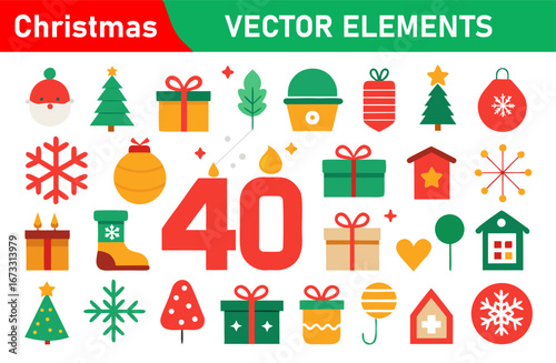 Festive Christmas Vector Elements Collection with Holiday Icons and Decorations
