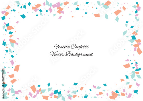 Festive color rectangle confetti background. Abstract frame confetti texture for holiday, postcard, poster, website, carnivals, birthday and children's parties. Cover confetti mock-up. Wedding card