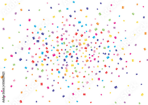 Festive color square confetti background. Abstract frame confetti texture for holiday, postcard, poster, website, carnival, birthday, children's parties. Cover confetti mock-up. Wedding card layout