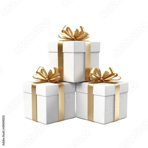 Festive concept white gift boxes with ribbon isolated on transparent background