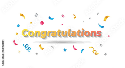 Festive congratulations banner with a burst of colorful confetti and streamers for a party or celebration