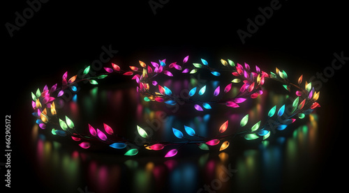 Festive, decorated corner with lighting garlands, created with the help of Generative AI technology.