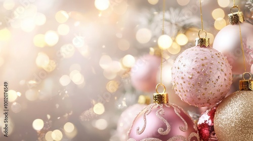 Festive decorations with premium pastel pink and gold Christmas ornaments
