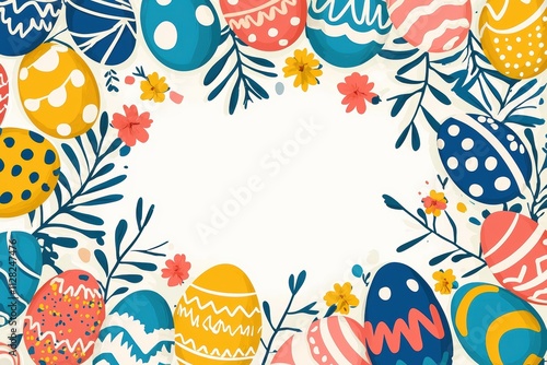 Festive Easter Card Template with Colorful Eggs and Floral Border for Creative Designs
