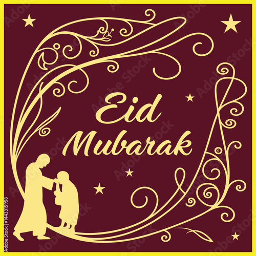Festive Eid Mubarak Typography with Traditional Islamic Elements