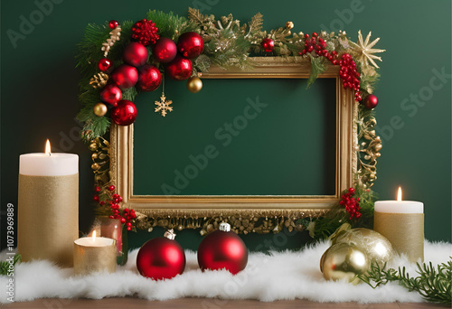 Festive Green Christmas Border with Elegant Ornaments
