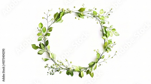 Festive Green Leaf Wreath Isolated on a White Background Perfect for Seasonal Decor and Celebrations, Bringing Nature's Charm to Your Designs