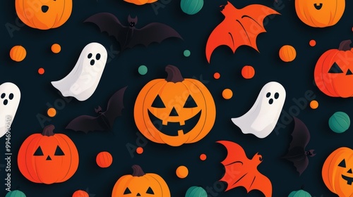 Festive Halloween Pattern with Pumpkins Bats and Ghosts