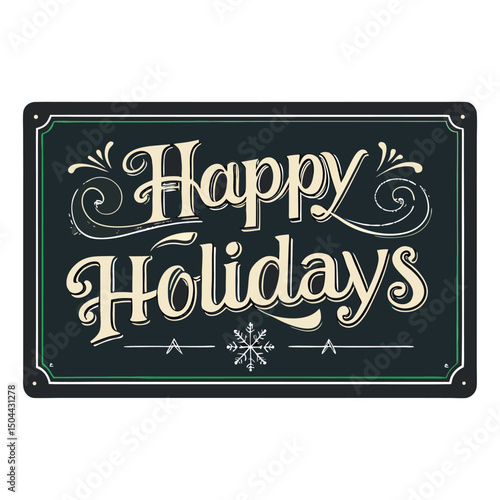 Festive "Happy Holidays" message written in white chalk on a classic black chalkboard background, surrounded by seasonal doodles like snowflakes, stars, and holly.